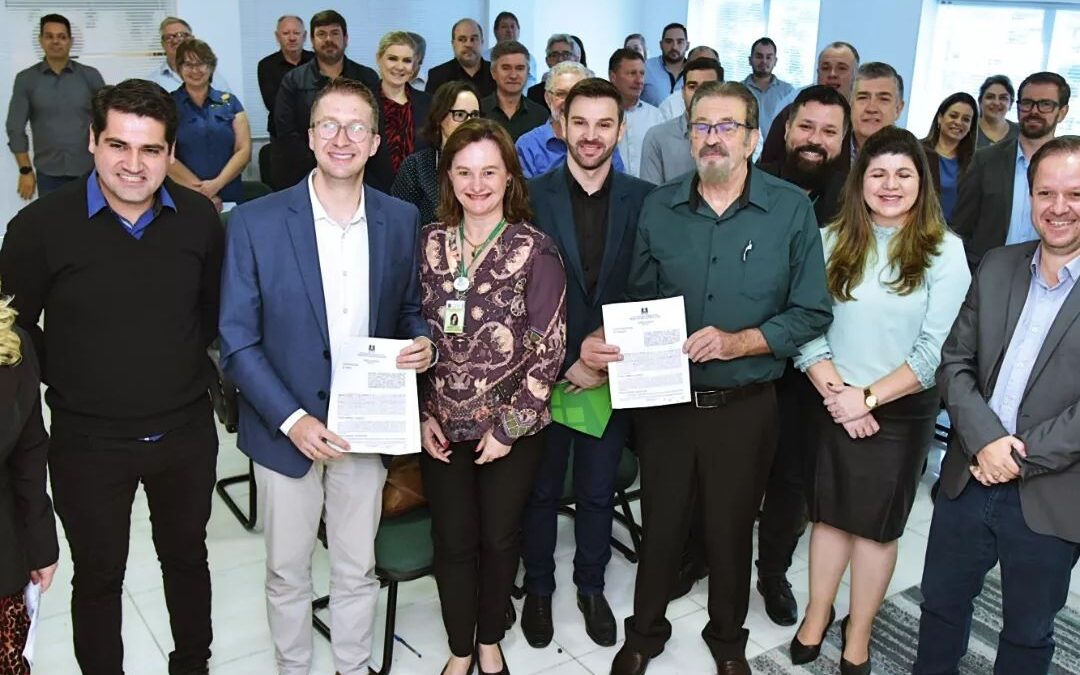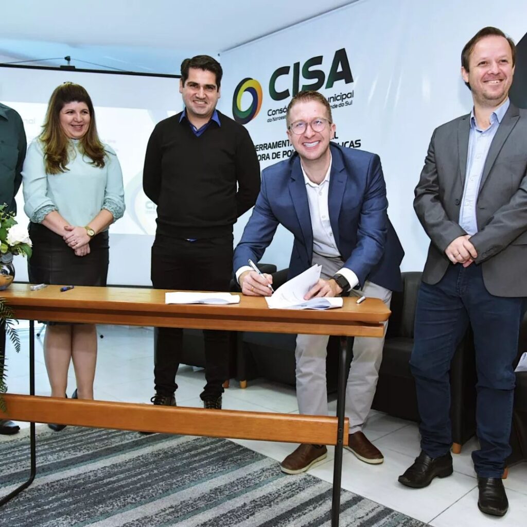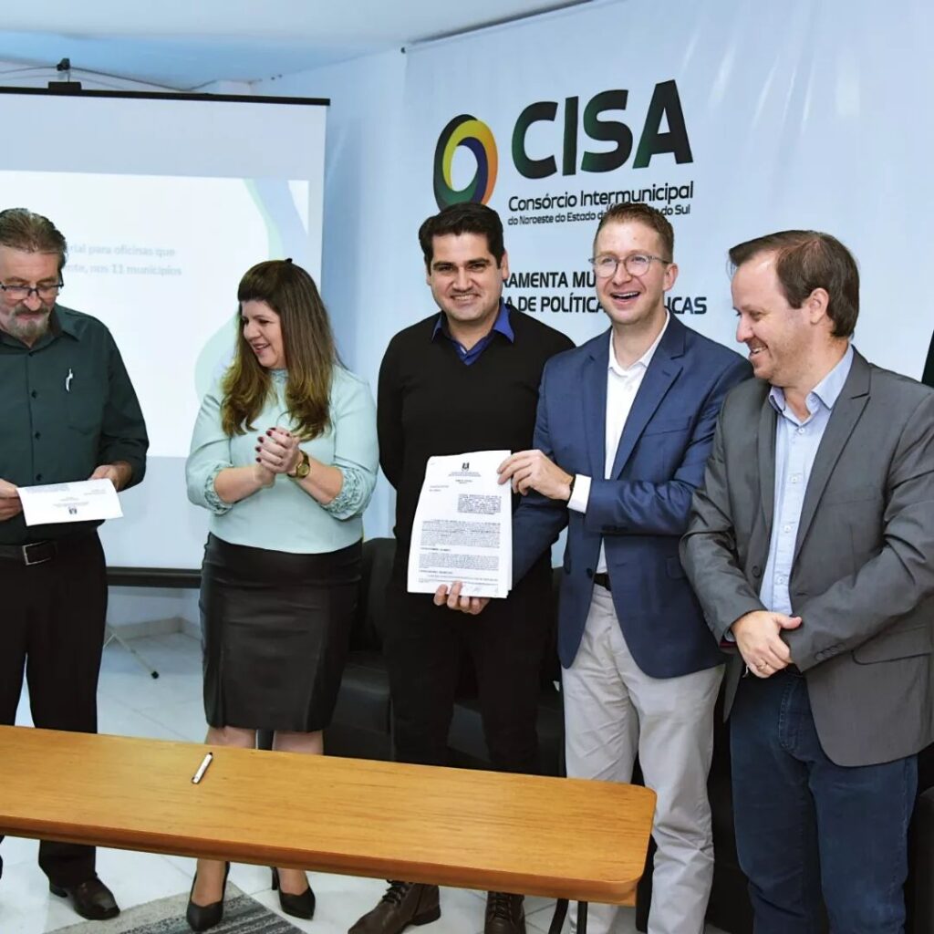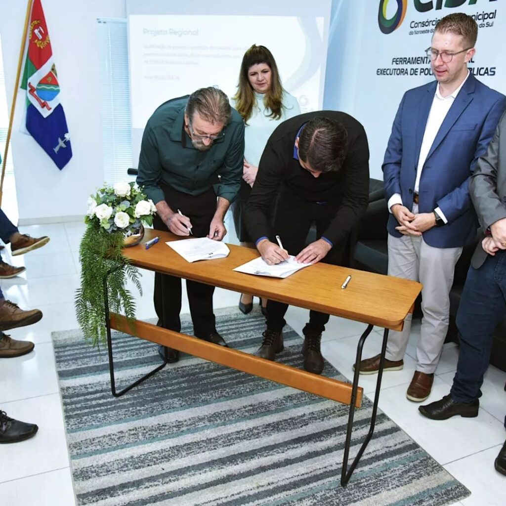 Ato de assinatura de um convênio entre o Governo do RS e Consórcio Intermunicipal do Noroeste do Estado- CISA.