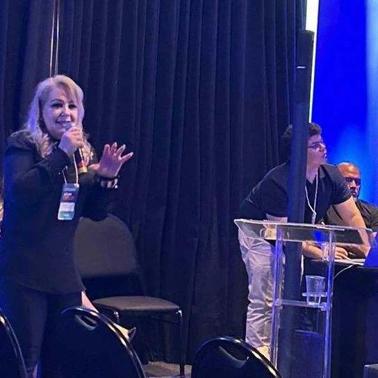 Diretora Executiva Elizabete Rolim durante a abertura oficial e apresentação do 1°Simpósio de Tecnologia em Gestão de Consórcios de Saúde, em Canoas.