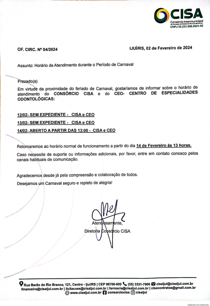 Horário de Atendimento durante o Pedido de Carnaval